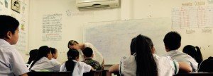 Een van mijn doelen tijdens mijn reis is het doen van vrijwilligerswerk op een plek waar het echt nodig is. Ik voelde me een beetje nutteloos (en dat na nog geen drie weken) en wilde graag wat betekenen. Maar niet via een project ofzo, ik wilde het anders. Ik wilde zelf bepalen hoe, wat en waar. Laos is zoals al eerder gezegd heel arm, daarom leek me dit de plek bij uitstek om aan de slag te gaan. Ik besloot om gewoon wat scholen te bezoeken en te vragen of ze behoefte hebben aan een lerares Engels hebben. De reacties waren heel verschillend. Men spreekt hier weinig of geen Engels, dat maakt het lastig. Bij een school was ik duidelijk niet gewenst, ik werd weggejaagd. Bij twee andere kon ik later terugkomen. Bij terugkomst bij de ene, kon ik de volgende dag weer terugkomen. Dat deed ik dus. De persoon die toen aanwezig was gaf me een telefoonnummer van een andere school. Ik belde deze school, maar het was een heel ongemakkelijk gesprek, we begrepen elkaar niet. In het hostel waar ik op dat moment verbleef was een Thais meisje en zij bood aan me te helpen. Loa en Thai lijkt erg op elkaar. Door haar kwam ‘de baas’ van de school me ophalen en liet zijn school zien. Ik probeerde een beetje te onderhandelen. Hij wilde me eerst laten overnachten in de school en laten douchen met een tuinslang bij de wc’s. Dat leek me niet zo. Uiteindelijk betaalt de school de helft van het guesthouse waar ik verblijf en kan ik meelunchen. Tegenprestatie: ik geef als (enige) vrijwilliger de hele week les op de leukste school van Loas. Schooltje met 250 leerlingen, van elke klas is er een. Ik geniet van elke dag dat ik er ben. Wel is het lastig, want er zijn nogal wat verschillen. Wat voorbeelden: de kinderen lopen onder lestijd de klas uit om snoep te kopen, snoepwinkel is op het schoolplein. Ze komen terug en eten het op in de klas. Zie je dit voor je in Nederland? Als tussendoortje is snoep not done op scholen, laat staan het op het schoolplein zelf te kunnen halen. Sommige kinderen zie je een les lang niet omdat ze ‘problem with brain’ hebben. Alles gebeurt klassikaal, waardoor het langzaam gaat. Iedereen spreekt door elkaar, er is geen ‘orde’. Er zijn geen boeken, alleen de leerkracht heeft een boek. De engelse leerkracht waarmee ik werk, spreekt eigenlijk geen Engels. Ze leert de kinderen vanuit het boek, schrijft de vertalingen op het bord, maar spreekt de taal niet. Ik doe mijn best te laten zien welke onderwijsvormen er nog meer zijn. De monden van de leerkrachten vielen open toen ik de kinderen een beetje liet bewegen (drie uur zitten in de hitte, zonder airco, met drie kinderen aan een bank en dat als je zes bent kan nooit goed zijn). De kinderen waren aan het giechelen… zoveel mooie, gelukkige gezichtjes, daar doe je het voor! Ik probeer de docent de juiste uitspraak mee te geven, het Lao heeft zoveel andere klanken, is zo lastig voor haar. Ik laat haar zien dat je best wat van het boek af mag wijken, maar dat is ondenkbaar. De komende weken ga ik me voor 100 procent inzetten! Ik spreek al wat Lao. Ik leer Lao van haar, zij Engels van mij. En de kinderen als het goed is ook wat meer engels 🙂